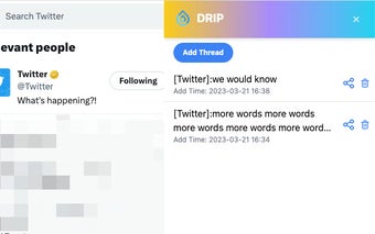 DRIP to rozszerzenie Chrome opracowane przez basefas, które służy jako menedżer wątków na Twitterze. Dzięki DRIP możesz łatwo zapisywać i zarządzać wątkami na Twitterze. Rozszerzenie umożliwia zapisywanie użytkownika, treści i adresu URL wątków, zapewniając, że nie zapomnisz żadnej ważnej informacji.